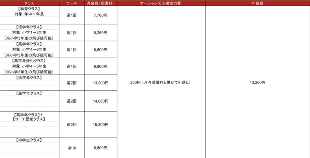 会費・クラス・スケジュール